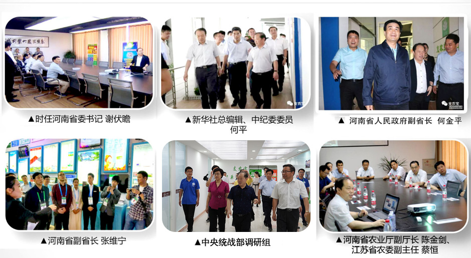 支農(nóng)寶的發(fā)展得到各級領(lǐng)導(dǎo)的關(guān)心和支持。時(shí)任河南省委書記謝伏瞻,河南省副省長何金平,新華社總編、中紀(jì)委委員何平,國家發(fā)改委調(diào)研組,河南省政協(xié)副主席、工商聯(lián)主席梁靜,團(tuán)省委書記王藝,全國青聯(lián)主席李榮,中央統(tǒng)戰(zhàn)部調(diào)研組,市委、市政府和睢陽區(qū)委區(qū)政府主要領(lǐng)導(dǎo)等都曾蒞臨支農(nóng)寶調(diào)研,并給予很高的評價(jià)。